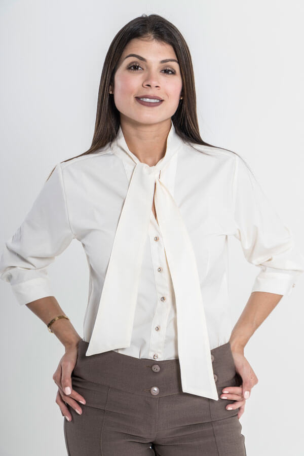 Blusa manga 3/4 con corbata. Pantalón de pretina anatómica (ref: 0021).